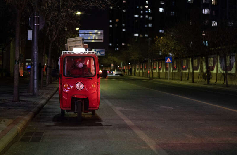 12月15日17时30分许,北京天色渐晚。在京东快递天宫院营业部,刚抵达北京不到24小时的齐帅龙发动配送车,驶向约3公里外的新源时代小区,开始夜间派送。
