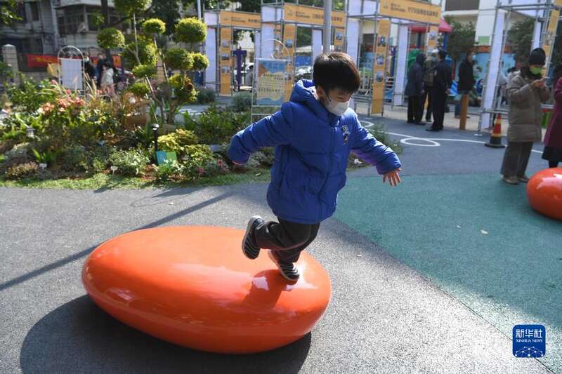 12月17日,小朋友在南宁市青秀区南湖小区改造后的中心花园玩耍。