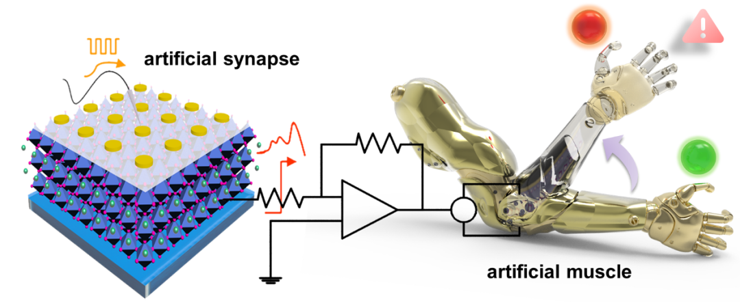 在成功实现塑性调节、逻辑运算、时空关联信息处理和关联学习等重要神经功能的基础上,团队成功以此器件为信息处理核心,构建了具有肌肉疲劳感知功能的神经肌肉系统(Neuromuscular System),对外周神经反射弧修复再生、神经形态软体机器人以及物理智能(Physical Intelligence ,PI)等领域发展具有重要意义。