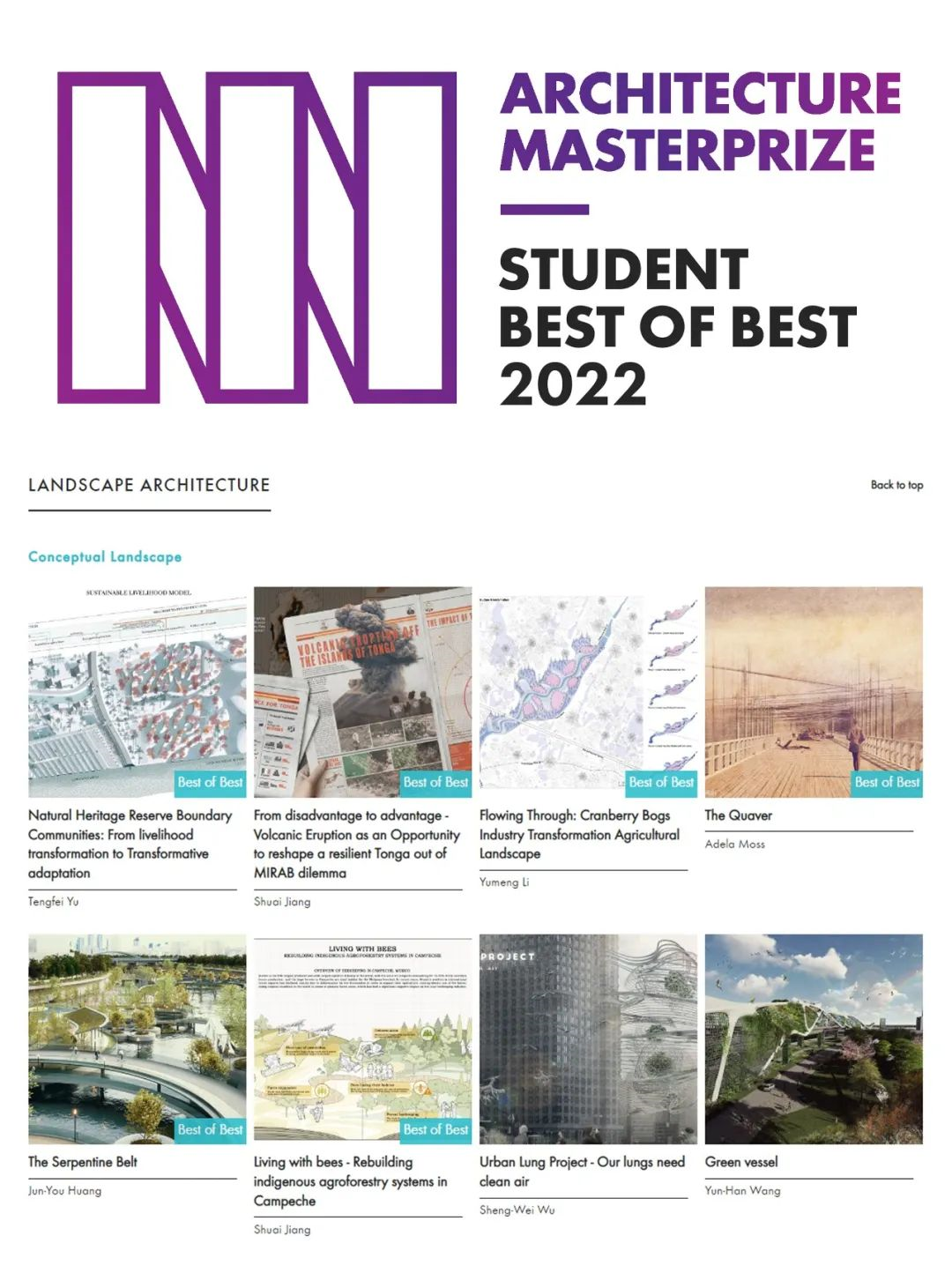 斩获了IFLA国际大学生景观设计竞赛分析与规划特别奖、