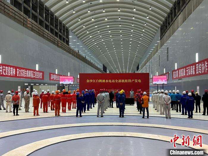 中新网成都12月20日电 记者20日从中国能建葛洲坝机电公司获悉,当日,由该公司承担机电安装与调试任务的全球在建规模最大、技术难度最高、单机容量最大水电工程——金沙江白鹤滩水电站最后一台机组9号机组顺利完成72小时试运行,正式投入商业运行,标志着白鹤滩水电站全面投产发电。