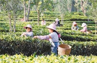 澜沧拉祜族自治县勐朗镇大林窝村,茶农在采摘茶叶。梁志强摄(人民图片)