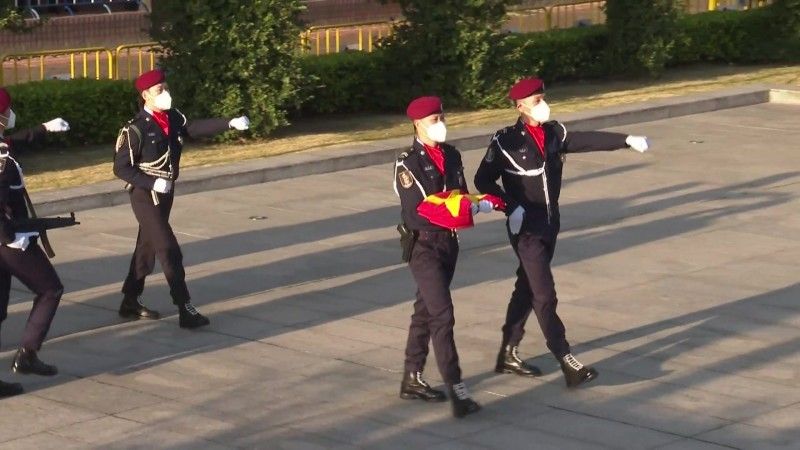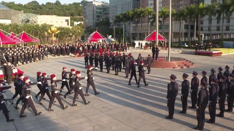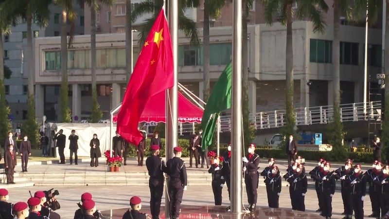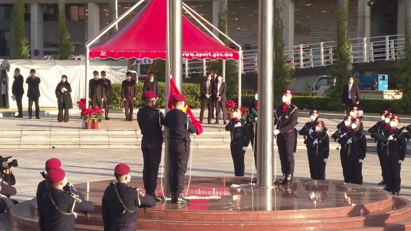 2022年12月20日,澳门特区政府在金莲花广场举行升旗仪式,庆祝澳门回归祖国23周年。