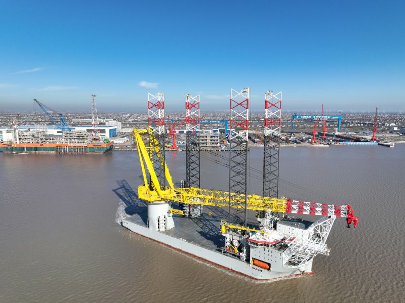 据介绍,N966项目是启东中远海运海工作为EPC总包方承建的全球首艘3000吨级别的自升自航式风电安装船。该船具有超强起重能力,主吊机起重能力超过3200吨,是迄今为止该类船型的最大起重吨位,最大吊高达到了325米,最大作业水深超过80米,有效载荷超过16000吨,该船将实现超低排放,是首艘达到欧五排放标准的该类船型。该船交付后,不仅能够安装下一代风电机组和底座,也可用于石油和天然气行业,以及海上结构的拆除。