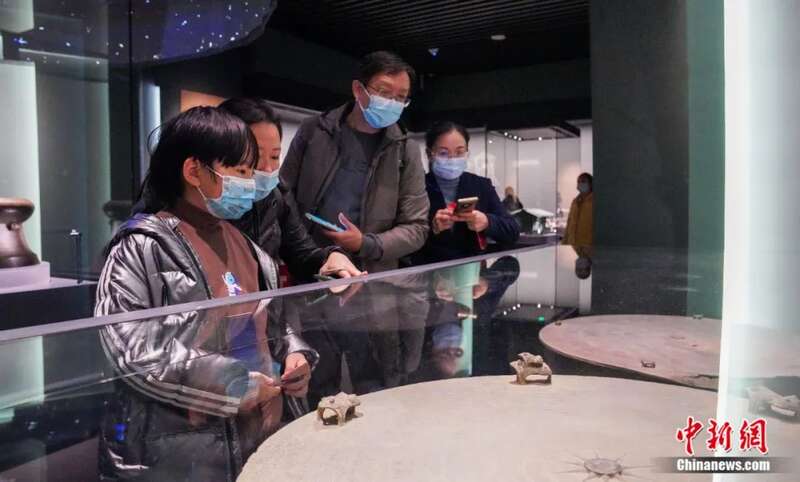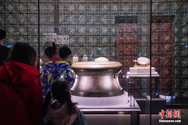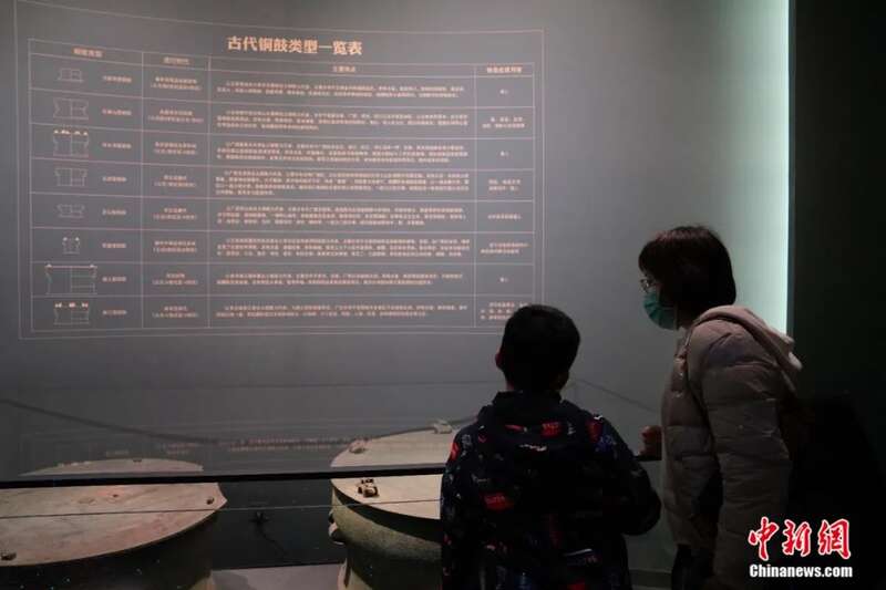 观众在参观广西壮族自治区的铜鼓展品。钟欣 摄