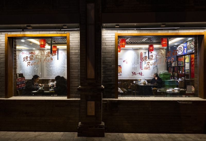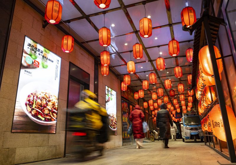 2022年12月22日,北京,冬至节气到来,一些市民前往东直门内大街的“簋街”的餐厅,准备享用晚餐。