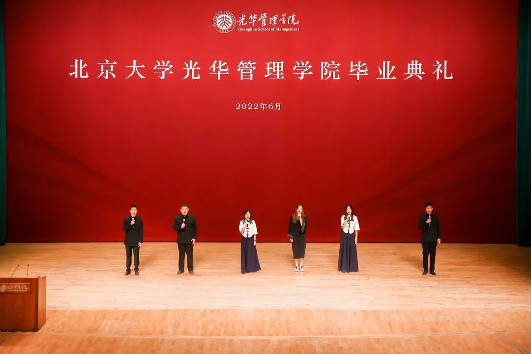 冯溢昕(右三)作为双学位毕业生参加光华毕业典礼,献唱《燕园情》
