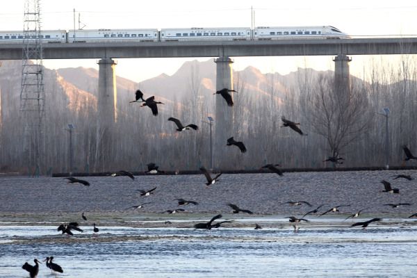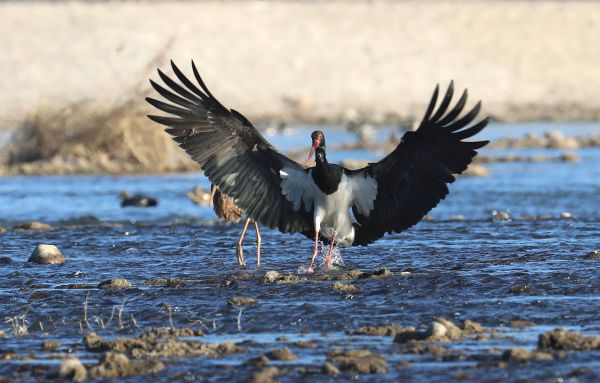 近日,近百只黑鹳飞抵河北省井陉县绵蔓河一带栖息越冬。黑鹳是世界濒危珍禽,属国家一级重点保护野生动物,因数量稀少,被称为“鸟中大熊猫”。近年来,井陉县持续推进生态环境治理,维护河湖生态平衡,吸引许多珍稀鸟类前来栖息。