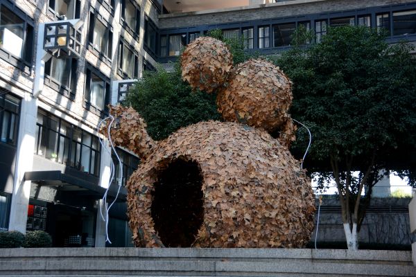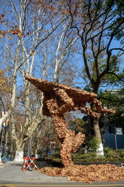 2022年12月24日,浙江省杭州市,落叶制作的艺术作品亮相南山路。