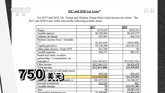 据筹款委员会公布的文件,特朗普在2016年和2017年只缴纳了750美元的联邦所得税。美国广播公司称,这一纳税数额要低于一名公立小学教师所缴纳的年所得税。而到了2020年,也就是特朗普任总统的最后一年,随着新冠疫情在美国暴发,特朗普报告了近480万美元的亏损,应缴所得税直接成了0美元。
