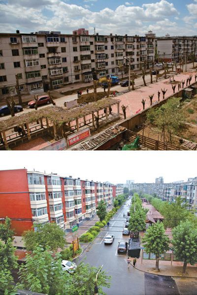 辽宁省沈阳市皇姑区三台子牡丹社区。上图为改造前的小区面貌,下图为改造后的小区环境。 辛阳 唐正元 摄影报道
