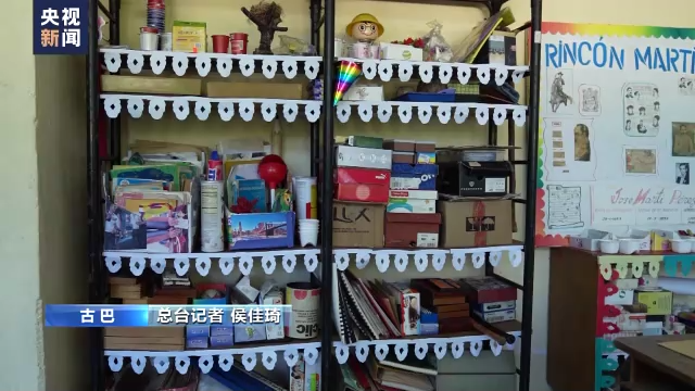 总台记者 侯佳琦:由于长期物资匮乏,古巴人已经习惯了将废物重新利用创造新的价值。在任何一间教室里,我们都能看到这样的手工手绘的笔筒、书本支架、书立、文件收纳盒等用品,这些都是老师们用硬纸板亲手制成的,来应对学习和办公用品的短缺。