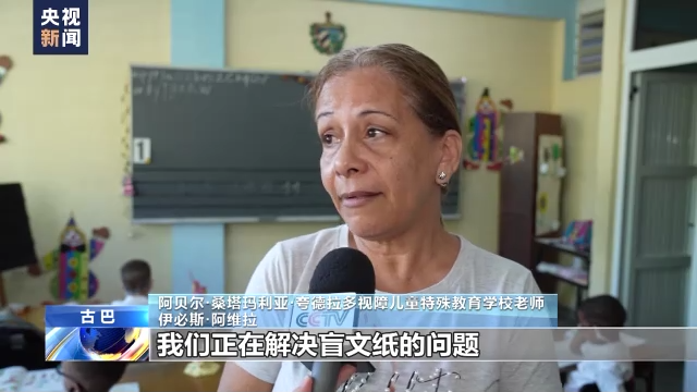 阿贝尔·桑塔玛利亚·夸德拉多视障儿童特殊教育学校老师 伊必斯·阿维拉:我们正在解决盲文纸的问题,也许在其他国家能找到盲文纸,但对古巴来说太难了,封锁阻碍了其他国家将原材料运往古巴。