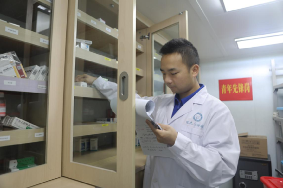 清晨船舱外晨光刚好,空气里依稀还能闻到食堂准备早饭的香气。门诊部医生李瑞正在准备这次巡诊的药品,上下三层的大药箱被各种药品挤得满满的,他白大褂的口袋里还塞着几盒膏药。