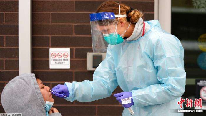 资料图:当地时间12月20日,美国犹他州盐湖城护士正在给民众做核酸检测。