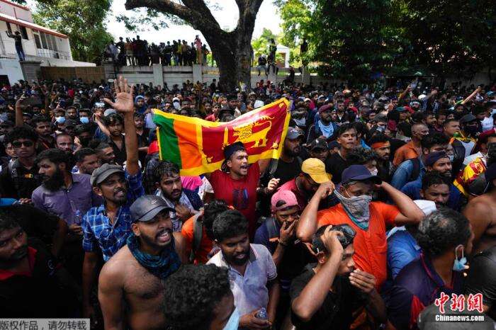 资料图:2022年7月23日,由于经济崩盘导致连续几个月的民怨沸腾,斯里兰卡成千上万的示威者分别冲进首都科伦坡的总统官邸。