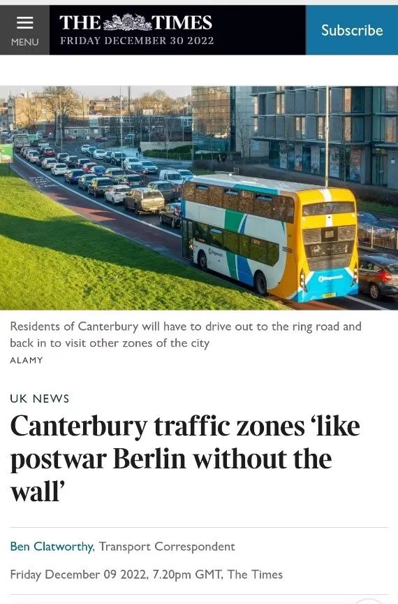 不过,英国确有城市为了减少污染进行了一些区域划分的尝试。今年10月,英国坎特伯雷地方议会曾发起提案,试图将城市分为五个区域,并禁止司机在不同的区域之间穿行,以鼓励居民步行、骑自行车或使用公共交通工具。坎特伯雷市议会领导人Ben Fitter-Harding表示,该市不考虑收取城市拥堵费,因为这会影响城市经济,但可以划分区域以减少车流量。不过,这项计划也是通过交通摄像头实现,Fitter-Harding 称,“我们不会设置物理障碍,但如果你在社区之间开车,你会收到罚款。在紧急情况下,你不会被阻止通过,而大多数情况下只有持有许可证的人才有资格通过。“