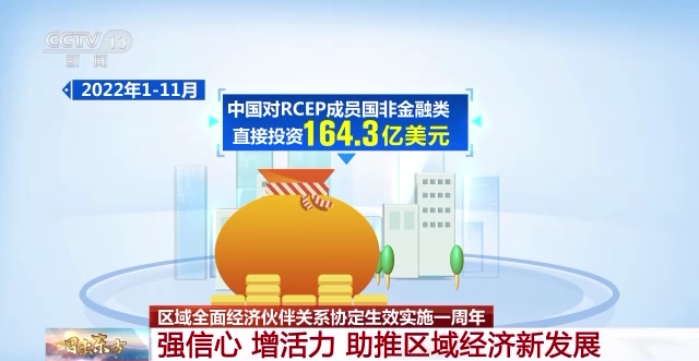 同时,RCEP作为综合性的自由贸易协定,为我国与RCEP国家企业相互拓展投资合作也创造了更好的制度性环境,提供了更大范围内的开放合作平台。2022年1-11月,中国对RCEP成员国非金融类直接投资164.3亿美元,同比增长20.7%;中国实际利用RCEP其他成员投资金额约219亿美元,同比增长40.2%,其中RCEP成员中的韩国、日本实际对华投资分别增长122.1%和33.1%。