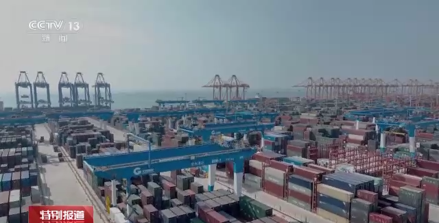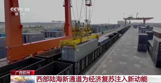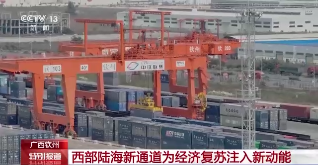 总台记者 张卉:我现在的位置就是广西钦州铁路集装箱中心站,在我身边的这趟班列正在装载来自泰国的木薯淀粉,一会儿它就要从这里发车前往重庆,预计2天后到达。这也是2023年首批通过西部陆海新通道铁海联运班列进口的货物。在港口作业区,远程自动化龙门吊正在通过电脑系统的控制,把集装箱吊装上火车。这种远程自动化龙门吊从单侧作业转变为两侧同时作业,有效提升了装卸作业的效率。