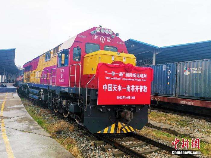 资料图:“中国天水—南非开普敦”国际班列从兰铁局兰州货运中心天水铁路货场驶出。 中新社发 李志杰 摄