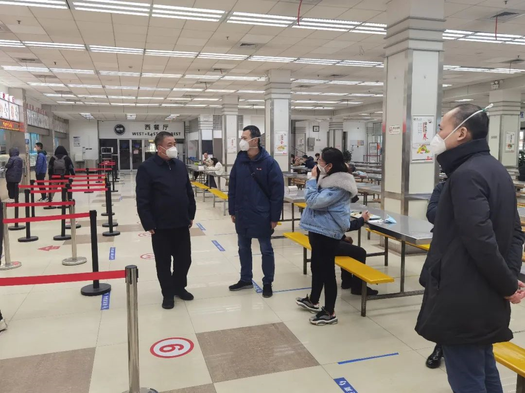中午,金力前往旦苑食堂,听取总务处对食堂近期餐饮供应、员工健康等情况的介绍,慰问坚守一线的食堂员工,感谢他们的辛勤劳动和暖心服务。