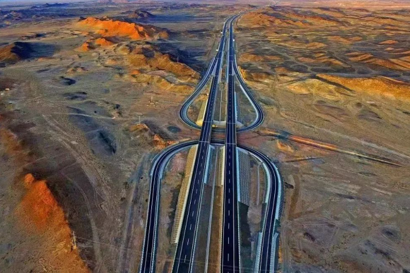 ▲新疆依若高速公路U型转弯路面,桥梁下专设野生动物通道,为野牦牛、野骆驼等野生动物让路。新京报资料图