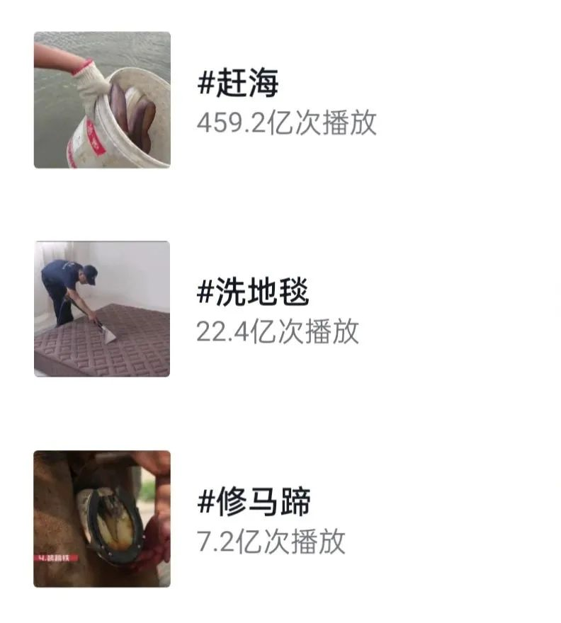 抖音上洗地毯、修马蹄、赶海等一系列解压视频除了是大家睡前、上厕所时的必看短视频,同时也成为了新的下饭电子榨菜之一