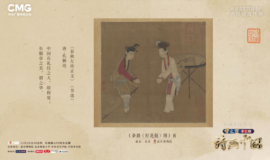 在《诗画中国》栏目中,我主要负责为《乐舞中国》与《四时中国》两期节目选定的名画寻找合适的诗词作品,或者导演组已有拟选的作品,对诗作与画作匹配度上进行把关。当然,导演组为每位专家分了两期来主负责,但其他各期的内容也会在专家群里来讨论,对一些难题大家一起来建言献策。