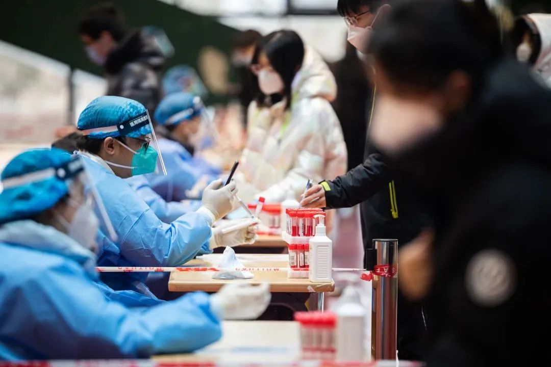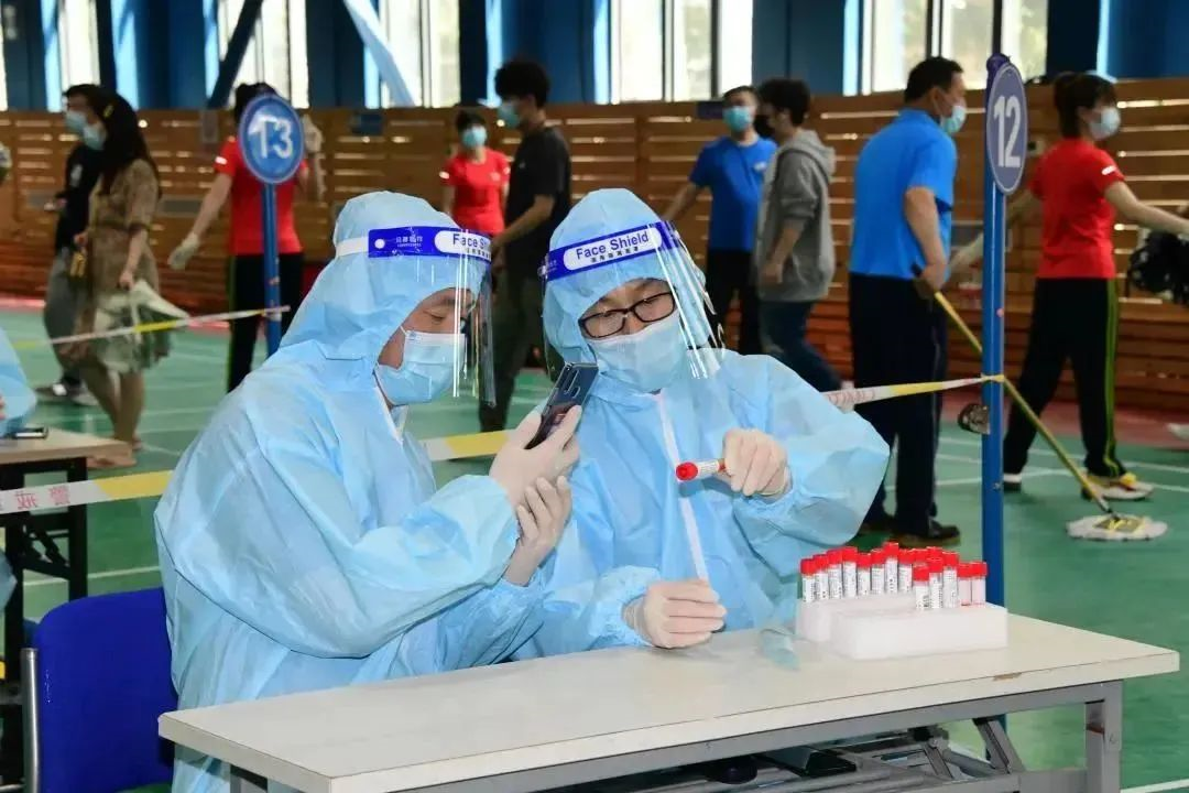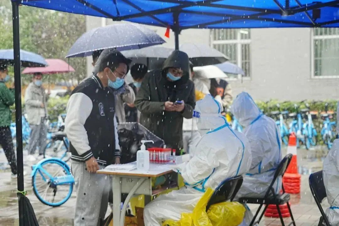 然而更多人不知道的是,他们之中有的克服腰病的困扰,休息一会后还继续选择上场;有的因为手机系统不兼容,为了能参与到核酸检测,自己去协调可以使用的机型;有的夫妻双方都在各自的单位驻守,把老人和孩子留在家里;还有很多人在志愿服务的岗位奋战到夜幕降临,还要拖着疲惫的身体回到办公室处理白天的工作直至深夜。