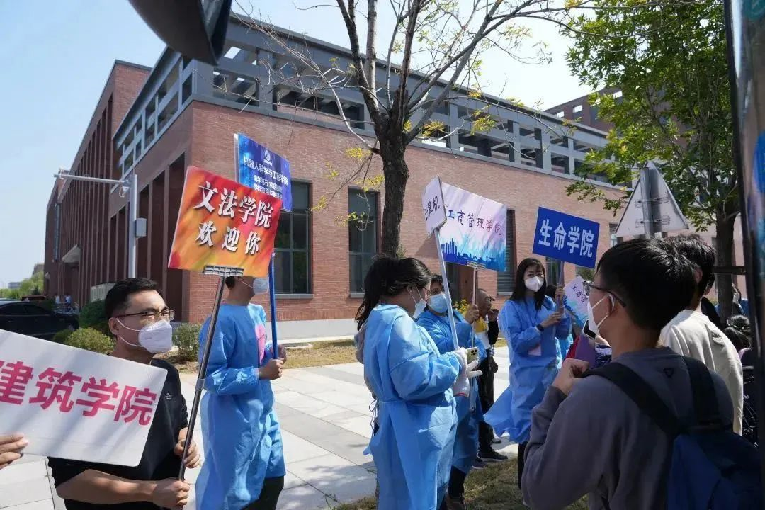 在两校区的校门口,信息核查员、行李消杀员、车辆引导员、秩序维护员、后勤保障员、核酸检测人员……所有的志愿者都严阵以待,每天身着十余小时的防护服,湿透的衣服,满身的疲惫,也掩不住师生相逢的喜悦。