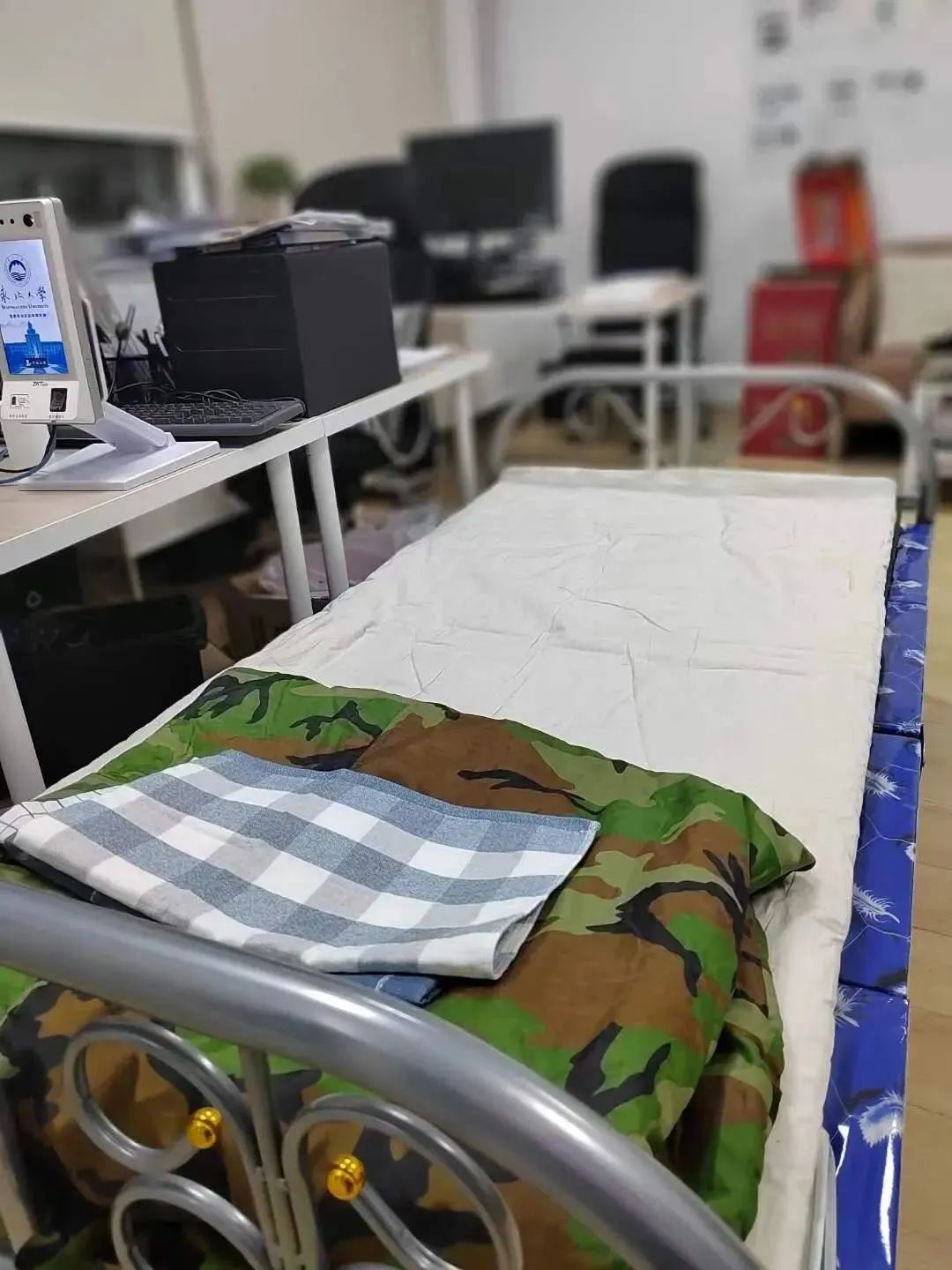 从设置集中隔离点到储备应急物资,从强化后勤生活保障到做好医疗服务保障,从校门进出管控到校园及周边治安维护,从常规循环抽检到全员核酸检测……办公室里支起的一张张床铺变成驻校教职工“临时的家”,党员干部们在日常工作与志愿服务工作的随时“切换”中跑出了迎难而上的“加速度”。他们用责任和担当筑起“红色防线”,在防疫的最前沿、关键处尽展党员风采。
