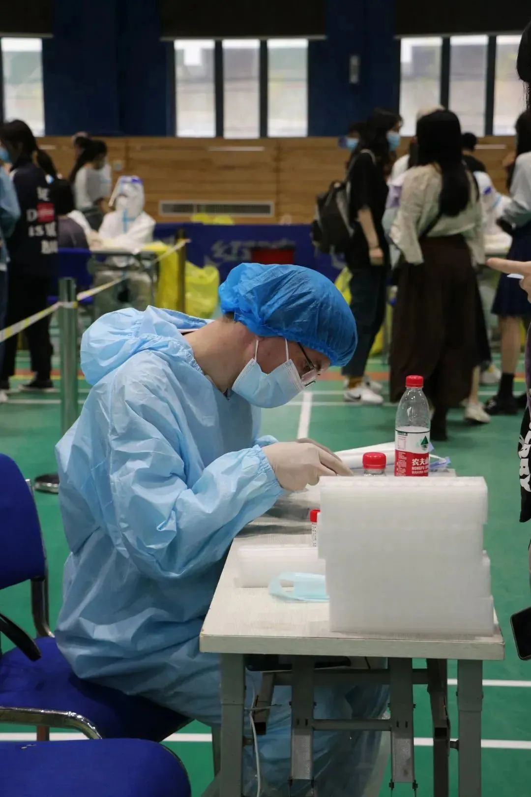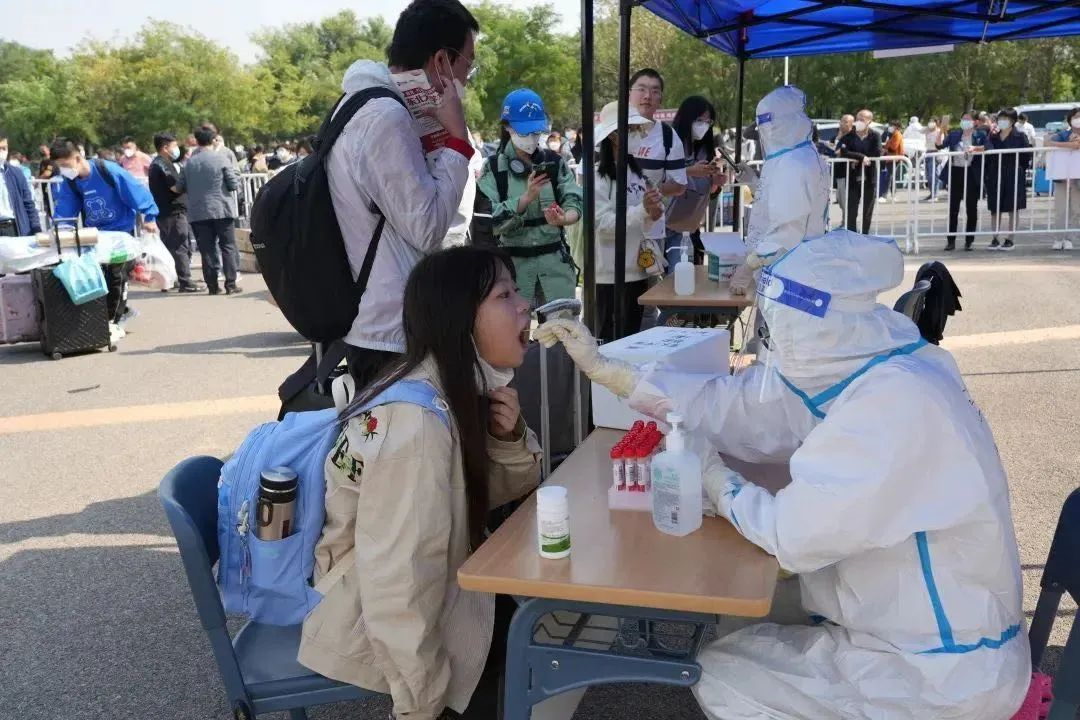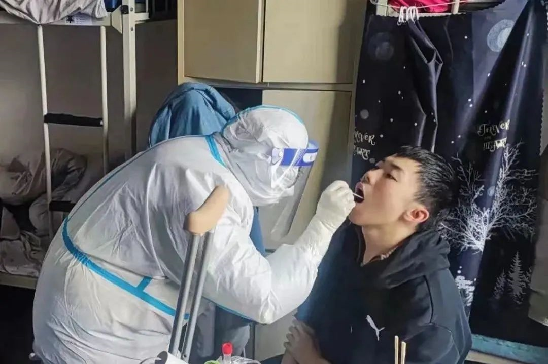 “啊,同学别紧张嘴张大”“很好,同学戴好口罩”……这些全副武装的“大白”很多都是我们校医院的医务人员,不论汗水打湿背脊,还是口罩印痛脸颊,每天挥臂上千次,她们人人皆温柔以待。