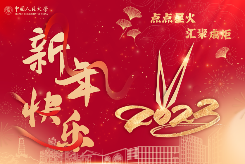 新征程的号角已吹响,实现中华民族伟大复兴进入了不可逆转的历史进程。全体人大学子要牢记习近平总书记2023年新年贺词中的殷切叮咛:厚植家国情怀、涵养进取品格,以奋斗姿态激扬青春,不负时代,不负华年。中国人民大学将坚定不移高举中国特色社会主义伟大旗帜,以习近平新时代中国特色社会主义思想为指导,在奔腾不息的时代潮流中劈波斩浪,以“争做先锋”的豪迈壮志、“实事求是”的磅礴伟力、“独树一帜”的澎湃情怀,奋力走好建设中国特色、世界一流大学的新路,在新时代中国昂扬奋进的浩荡洪流中奋楫扬帆,奔腾向前!