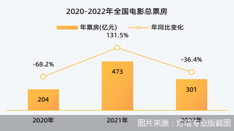 1月1日,据国家电影局数据,2022年度全国电影总票房为300.67亿元,其中国产电影票房为255.11亿元,在总票房中占比为84.85%;全年城市院线观影人次为7.12亿人次。