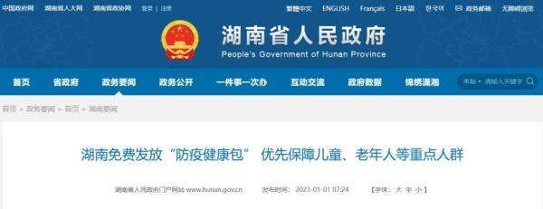 据湖南省人民政府官网披露,12月30日,湖南省新冠感染疫情防控指挥部向全省发出通知,决定在全省范围组织开展免费发放“防疫健康包”。