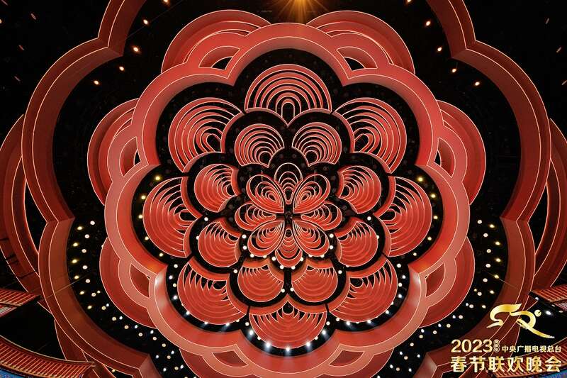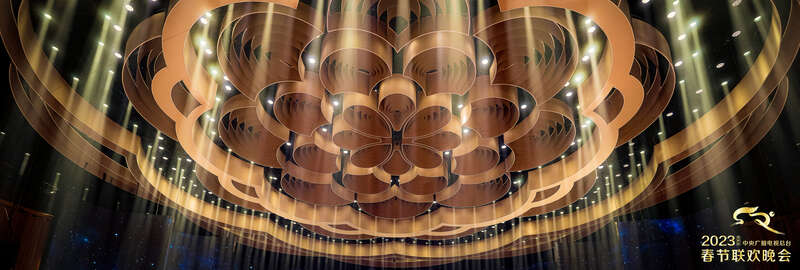2023年春晚舞美设计体现“满庭芳”的理念,取意自中国古典文学词牌名,通过演播大厅多个方位的设计,共同营造祈愿圆“满”的中华大家“庭”尽展“芳”华的主题气象。