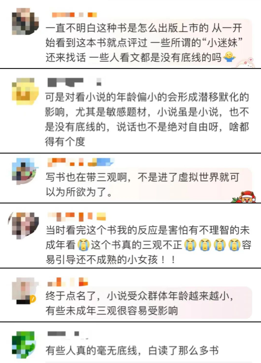 针对网友的热议,北京市鑫诺律师事务所律师张中辉指出,根据《中华人民共和国民法典》规定,民事主体从事民事活动不得违背公序良俗。公序良俗是指公共秩序和善良习俗,其中善良习俗是指基于社会主流道德观念的习俗,也被称为社会公共道德,是全体社会成员所普遍认可、遵循的道德准则。此外,根据国务院《出版管理条例》规定,任何出版物不得含有危害社会公德的内容。