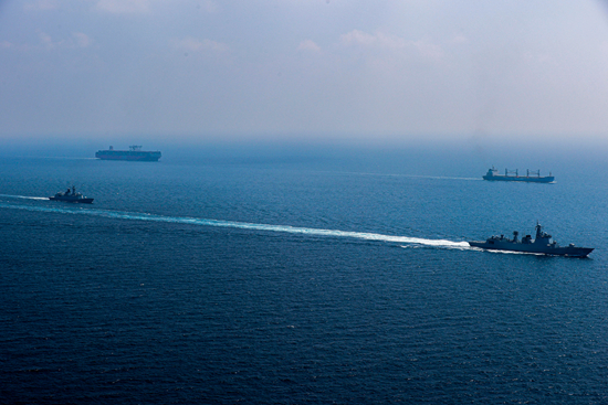反海盗演练、轻武器射击训练、狭水道航行训练、舰载直升机跨昼夜训练……翻看编队厚厚的训练计划表,每天都安排得满满当当,实战化训练课目一项接着一项。舰艇、直升机、特战队等原本隶属于不同建制的多个兵种,临时组合汇集在一起协同作战,一定程度上拆除了制约多兵种间联合训练的藩篱。执行护航任务中,即便是模拟演练,“火药味”也很浓,单兵之间、舰机之间和舰舰之间各层次、多种情况下的协同能力,都得到大幅度提升。