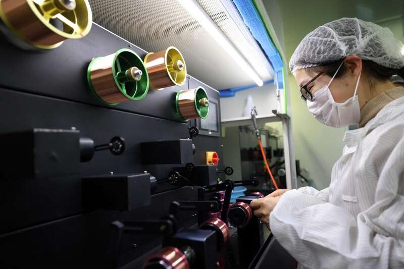 2023年1月5日,在合肥市瑶海区长三角数字科技示范园,安徽华晶微电子材料科技有限公司的员工在集成电路键合丝生产线上作业。近年来,安徽省合肥市瑶海区实施引育并举,不断加大辖区“专精特新”企业的培育和扶持力度。新华社发(解琛摄)