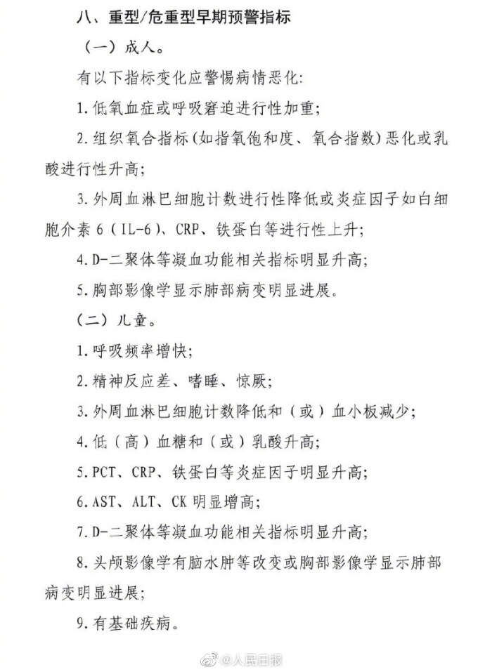 今天,国家卫健委、国家中医药管理局印发《新型冠状病毒感染诊疗方案(试行第十版)》。 最新版新冠诊疗方案介绍,新冠感染重型、危重型早期预警指标有这些↓↓转存注意!