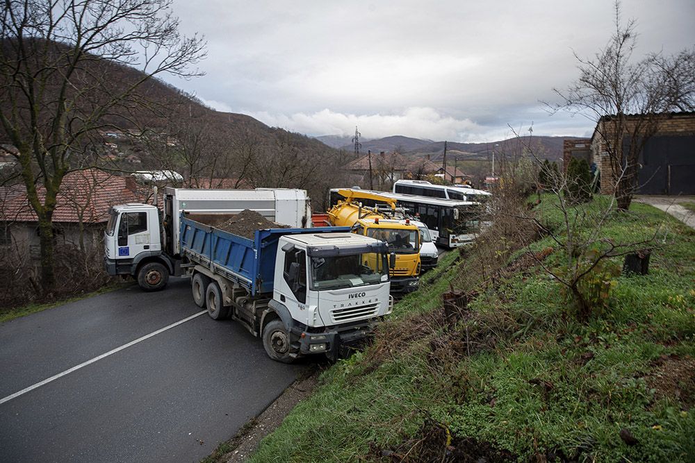 当地时间2022年12月11日,科索沃北部鲁达雷村,塞族人停放的重型车辆阻塞了道路。本文图片均为 视觉中国 图