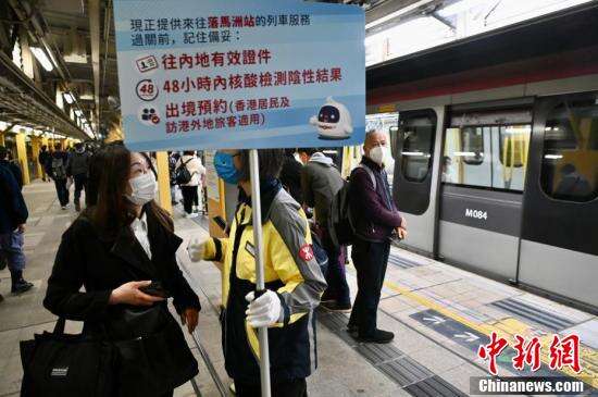 1月8日,香港与内地正式“通关”,大批旅客乘搭地铁从重开的落马洲站经口岸入境深圳。图为港铁职员于上水站提醒旅客入境内地的注意事项。