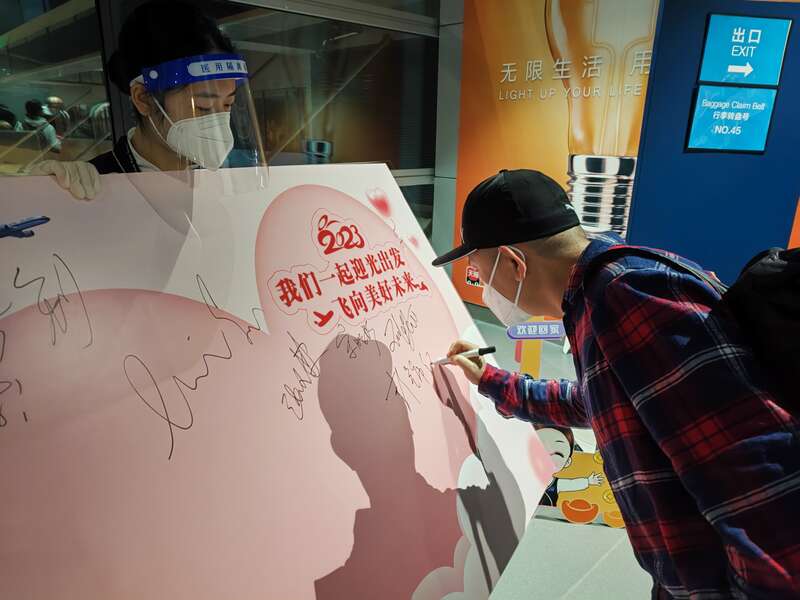 入境旅客写下美好祝福。南航供图