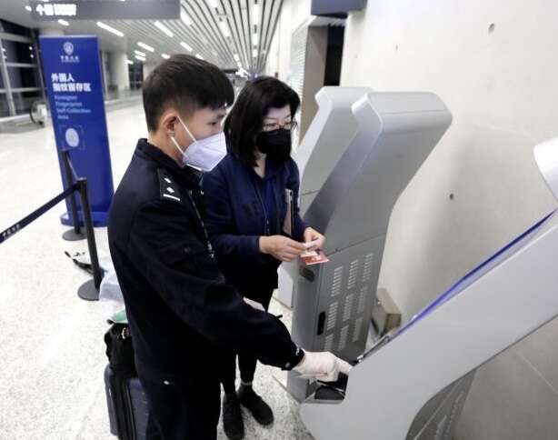 白云边检警察指导入境旅客办理相关手续。广州白云边检供图