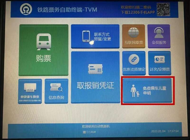 点击“免费乘车儿童申报”