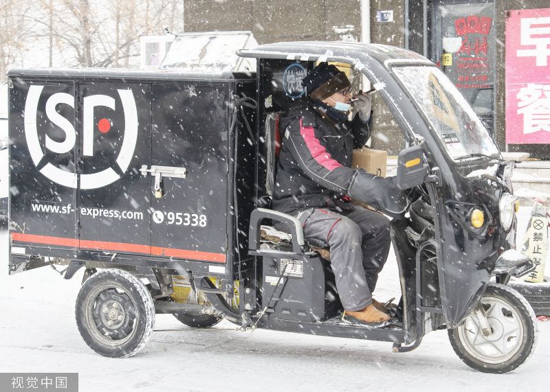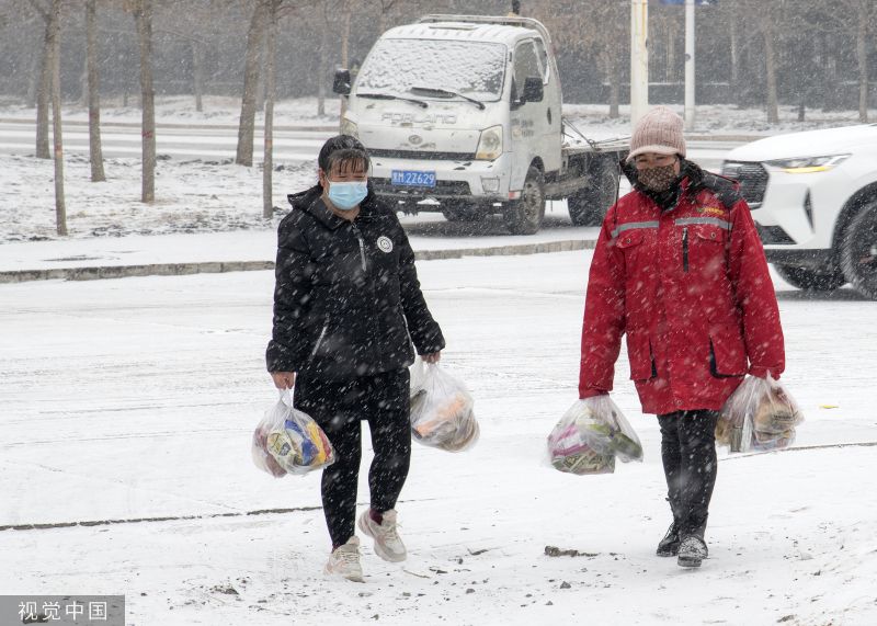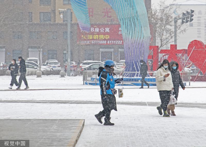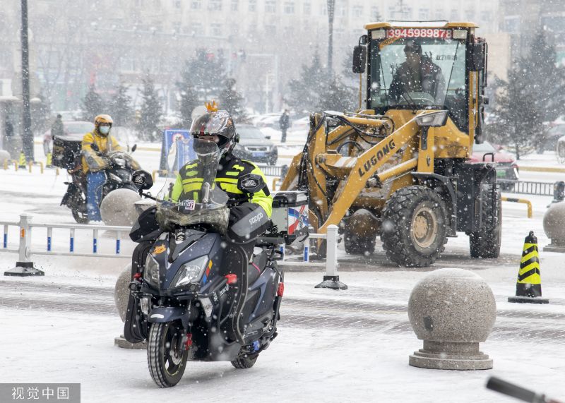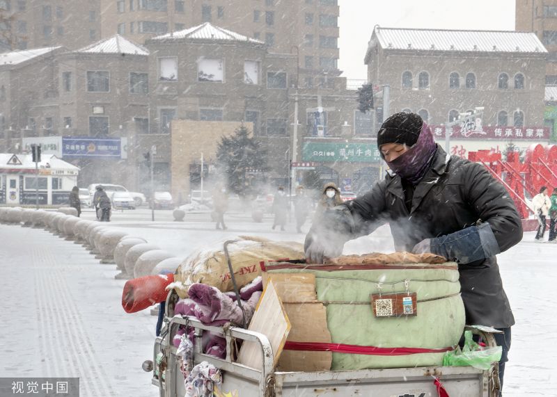 当日,黑龙江省大庆时迎来一场降雪,城市生活井然有序,当下的大雪与低温对于户外工作者已是家常便饭。