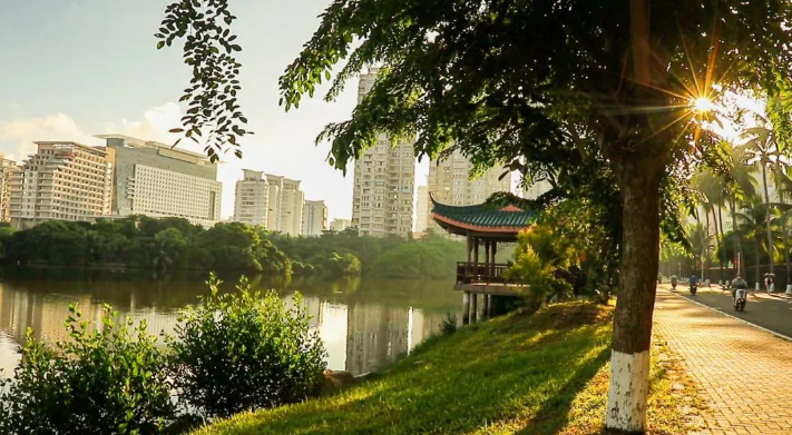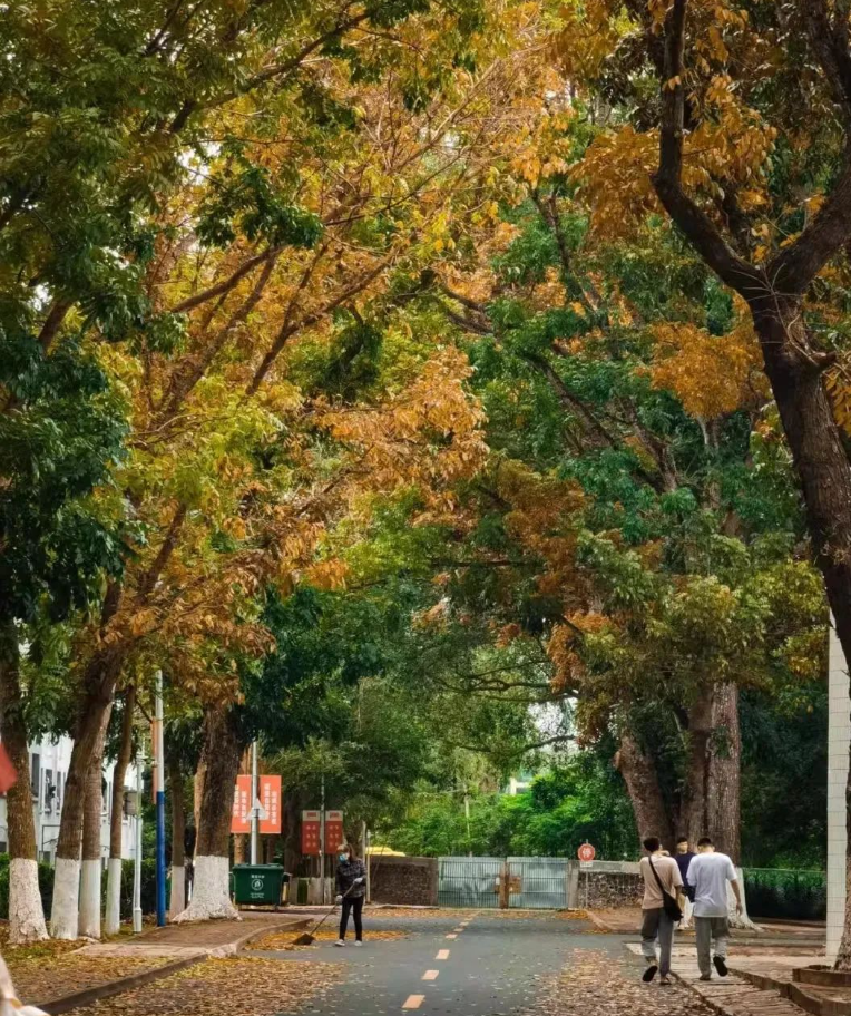 苍翠蓊郁的榕树在秋日渐渐变黄