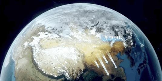 冬天,海里降温降得慢,所以相对陆地来讲,海上的温度就高一点,变成了海上是低气压,陆地上是高气压,这时候就形成了陆地吹向海上的季风。