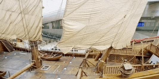 在中国上海航海博物馆的中央大厅里,陈列着一艘巨大的中国古代木帆船,它是按照明代郑和下西洋的标准船型复原而成。我们可以看到当时帆船的盛貌。