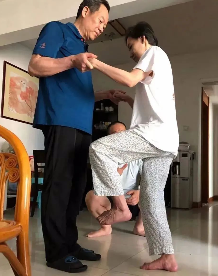 而作为照护者,郑文杰每日为女儿频繁地翻身、转移、腾挪也是不小的体力活,由于郑善元的足部回流差,每一次站立训练结束后,郑文杰和康复师就需要为她不停地搓腿,帮助血液循环。